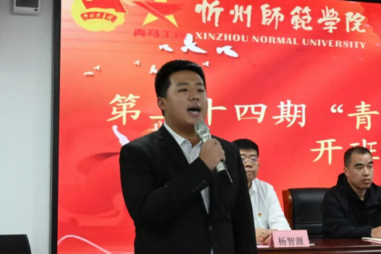 高士博同学代表本期“青马工程”培训班的全体学员在发言中郑重说到:以“马”为魂筑牢信仰根基,深学理论、坚定信念;以“实”为要锤炼本领,结合专业投身实践、服务大局;以“带”为责做好表率,凝聚力量带动同学共进,用行动践行“强国有我”的誓言!