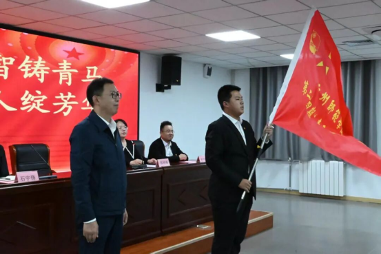 校党委副书记谭英杰为校级青马班授旗。全体学员目光灼灼,齐声喊出“厚学启智铸青马,修德树人绽芳华”的口号。嘹亮口号与鲜艳旗帜相呼应,既显学员风貌,更将青马使命深植人心,成为授旗环节的动人注脚。