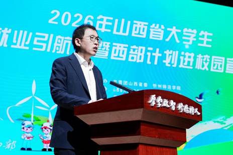 2026年4月7日9时30分,忻州师范学院2026年西部计划招募工作启动仪式暨山西省大学生“就业引航”西部计划进校园宣讲会在教师教育实训中心报告厅举行。校党委副书记谭英杰教授,共青团山西省委青年发展部部长赵坚,山西省青少年事业发展中心副主任李宏伟,校学生工作部部长胡海燕,校团委书记丁晓丽以及校团委班子成员、各系(院)团委书记、毕业班辅导员及1000余名学生代表共同参加活动。会议由校团委挂职副书记王宏主持。